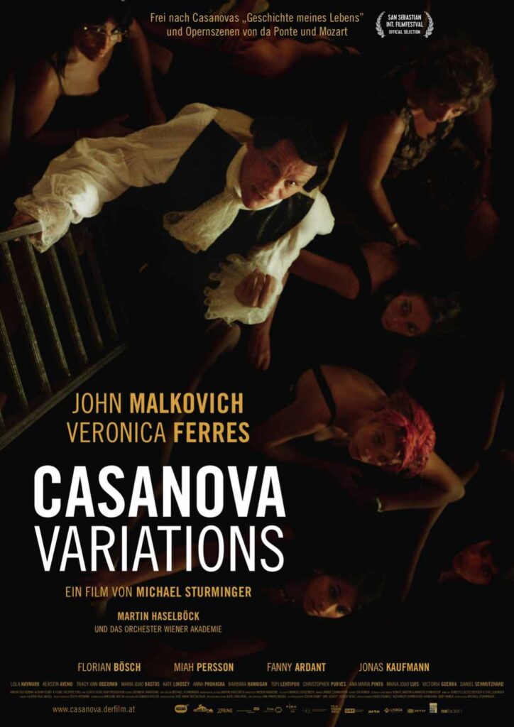 Casanova-Variations ist ein Kammeropernstück über den verstorbenen Giacomo Casanova, der angesichts seines nahenden Todes immer noch versucht herauszufinden, wofür wir leben, wenn nicht nur, um von der Frau, die wir lieben, begehrt zu werden. Giacomo, gespielt von John Malkovich, präsentiert seine Erinnerungen und Geschichten, um die Gräfin Isabella, die schöne Schwester seines Gastgebers Karl Emanuel Graf von Waldstein, zu beeindrucken, und natürlich versucht er sich an der Amme, der Näherin und dem Küchenmädchen, während er seine philosophischen Ansichten über Liebe, Medizin, Mode und Kochen entwickelt. Außerdem schlüpft Giacomo, der seine enge Freundschaft zu Lorenzo Da Ponte hervorhebt, in die Rollen von Don Giovanni, Graf Almaviva und Don Alfonso, aber auch von Figaro, Leporello und Guilielmo. Zu Mozarts Musik verwandeln sich seine Partnerinnen in Donna Elvira, Susanna, Dorabella, Despina, Zerlina und Rosina. Dies bietet die Möglichkeit, einige der schönsten Arien und Duette aus der Zusammenarbeit von Mozart und Da Ponte zu präsentieren, und führt dazu, dass zwei Sänger an bestimmten Stellen bis zu sechs Stimmen singen müssen. Sie sind gezwungen, zu oktavieren, Falsett zu singen und sich auf die stimmlichen Fähigkeiten der Orchestermitglieder und schließlich sogar auf die Schauspieler zu verlassen, ganz gleich, wie sie klingen mögen. Dieser mitunter recht unorthodoxe Umgang mit Mozarts Musik wird einen humorvollen Effekt haben, aber auch durch eine spielerische Atmosphäre einen unkonventionellen Zugang zu einer Reihe zentraler Meisterwerke von Mozarts größten Opernpartituren eröffnen. Die einzigartige Kombination des intensiven Schauspiels von John Malkovich und seiner Schauspielpartnerin mit der Wirkung zweier gefeierter junger Opernsänger und -darsteller wird einen ganz besonderen Zugang zu Mozarts fantastischen Opernszenen schaffen, auch für Menschen, die sich nicht regelmäßig für klassische Musik interessieren. Der Abend beginnt mit einem Schlaganfall und der arme Giacomo stirbt fast, bevor er überhaupt angefangen hat, aber im Laufe des Abends erholt er sich, wird jünger, fitter und stärker, da seine Erinnerungen seine Liebe und Lebenslust zu stärken scheinen. So kommt er seinem Wunsch, von Frauen begehrt zu werden, immer näher, aber auch seiner größten Angst, zu sterben, ohne herausgefunden zu haben, wofür er gelebt hat. Endlich, nachdem er geheilt und getröstet wurde, gekocht und gegessen hat, sich herausgeputzt und entkleidet hat, hat er die Geschichte seines Lebens erzählt und das Herz einer Frau gewonnen, die nun bereit ist, alles für ihn zu tun. Da er mehr über die Liebe weiß als jeder andere Mann, beschließt er, seine letzte Eroberung nicht zu verzehren, sondern im Zustand des Sieges zu sterben, was natürlich ein schöner Traum bleibt?